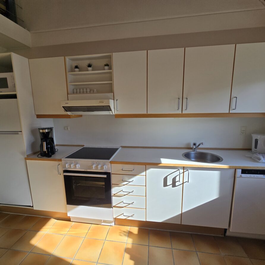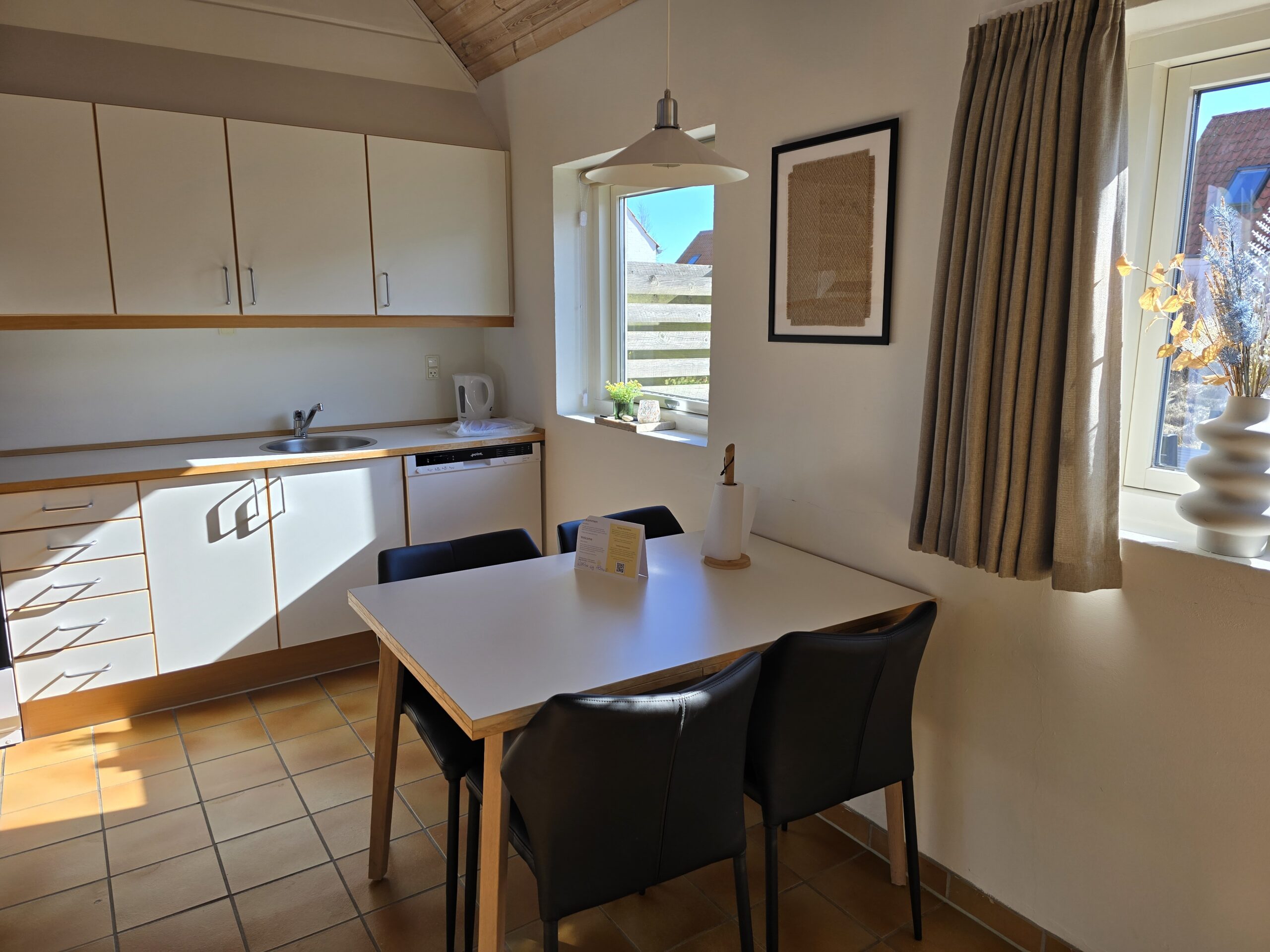 Rent og pænt – ideelt når man har hunden med. Et minus er trappen til første sal – snæver og stejl – omvendt tager den ikke meget plads op.