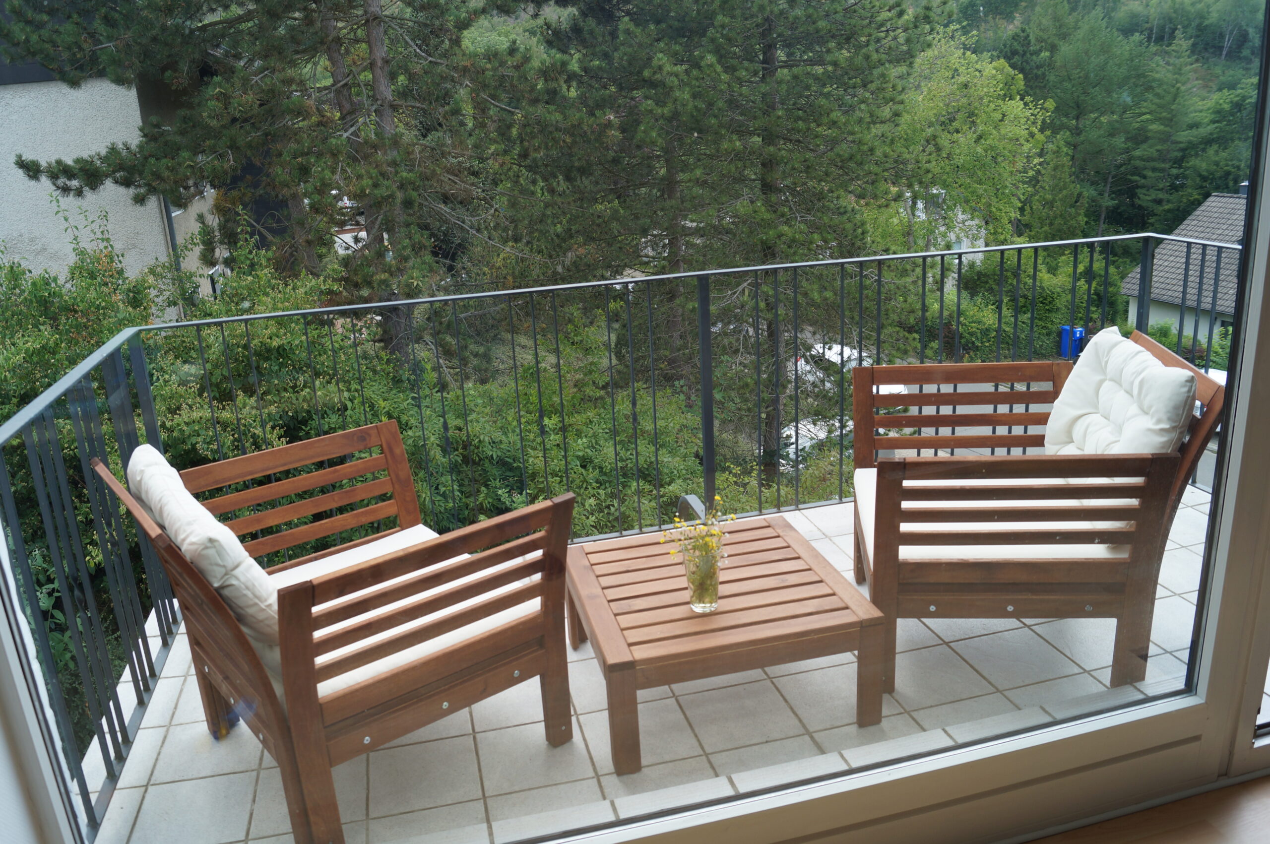 Lejligheden på Reitstallweg er lys, rummelig og moderne indrettet. Her er plads til hele familien med tre soveværelser, to badeværelser, en stor stue og to altaner med udsigt over byen og bjergene. De to værelser har dobbeltseng, det tredje værelse har to enkeltsenge, og i stuen er der en sovesofa med mulighed for yderligere to sovepladser (anbefalet til børn). Alt i alt passer boligen bedst til seks personer, men op til otte kan overnatte.