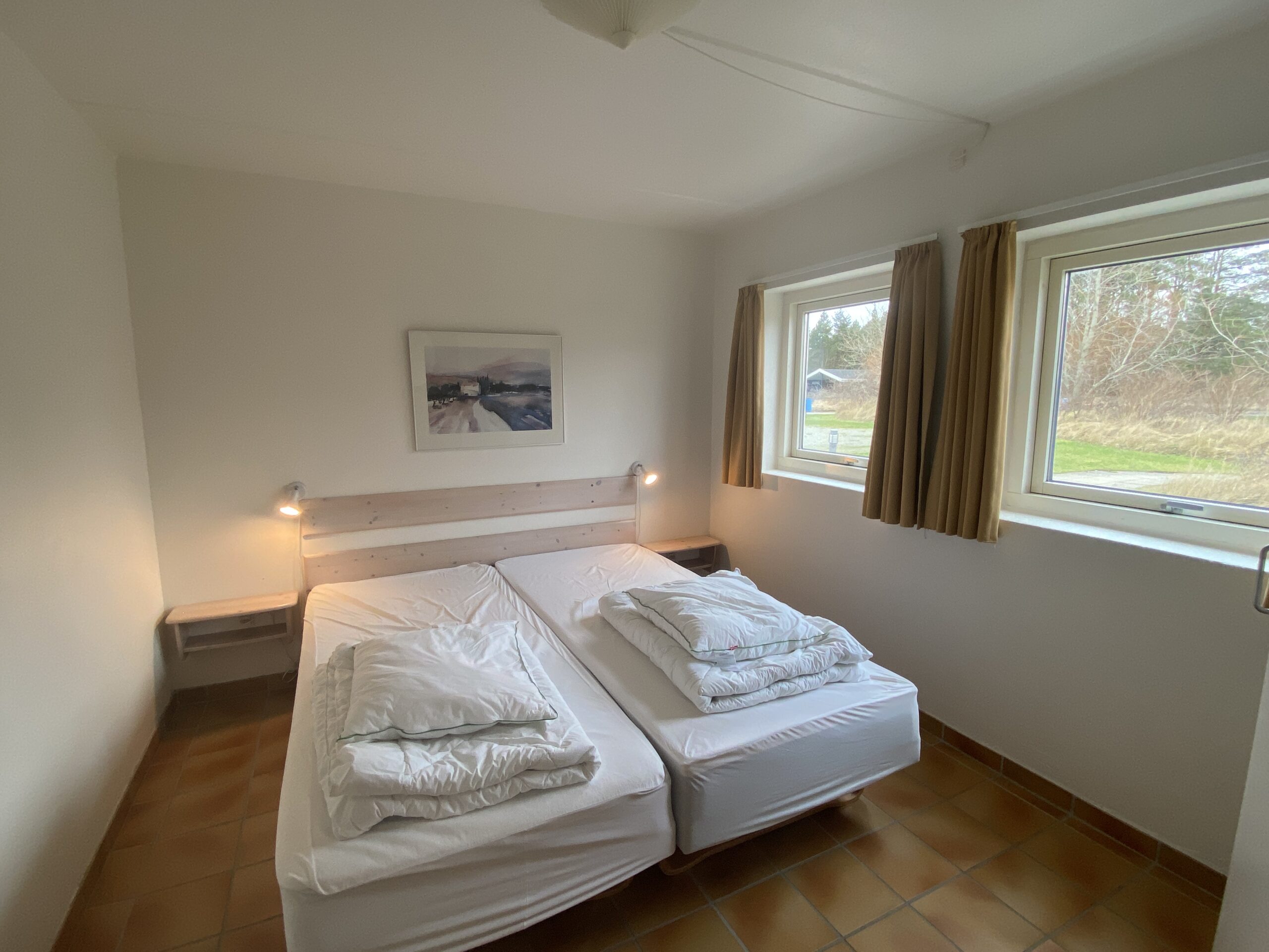 Lejligheden ligger i det dejlige Skagens feriecenter, hvor der er indendørs pool med vandrutsjebane, sauna, og damp sauna. Vi var der i oktober og det var hyggeligt område selvom det var blæsende. Det er lækkert med gulvvarme i huset. Der er et soveværelse i stueplan og et værelse på 1. salen med to enkelt senge. Derudover så er der to enkeltsenge på den åbne repo.