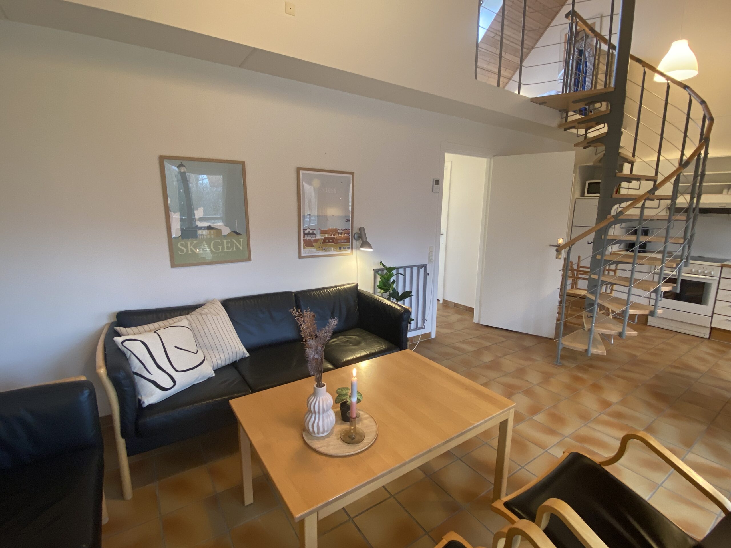 Lejligheden, hvor der er hvad der skal være og det hele er fint vedligeholdt. Det tager cirka 10 minutter, så er man i Skagen Centrum.